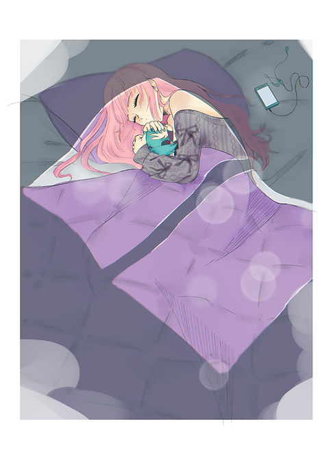 Planning: I first looked for references for the pose I had planned in mind, gathered separate references for the character (Luka Megurine) and the plushie (Miku Hatsune), for the bed, beddings, pillows, and blankets. Also, I studied how other artists rendered their works from values scale to a full colored illustration. Then, I grabbed myself a value scale of 10 from the Internet. Finally, I finalized the color palette to use after the value placement.